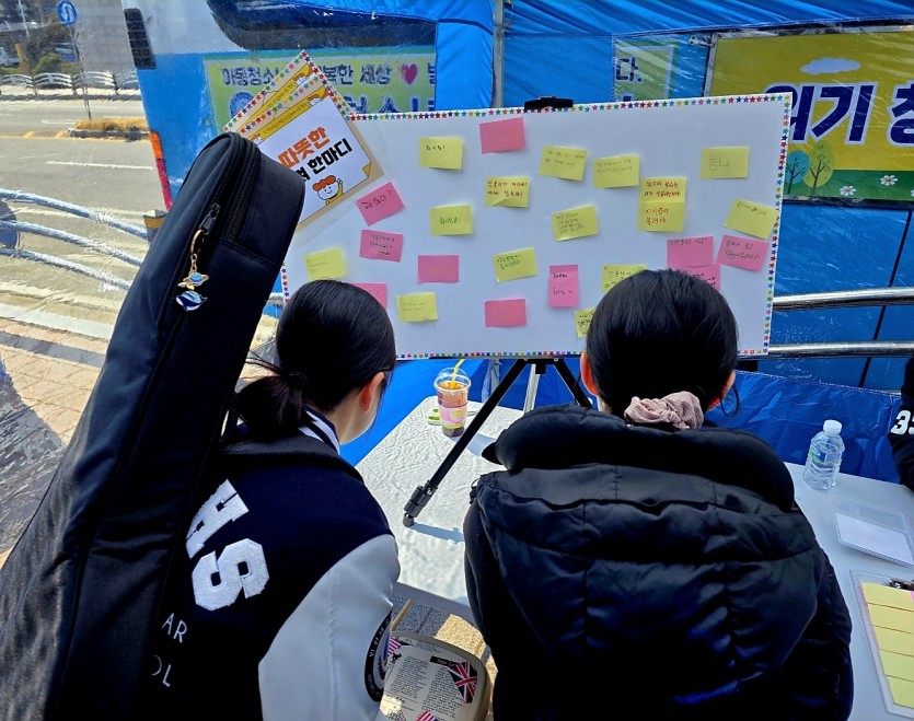 에서 하교 청소년을 대상으로 버스 내 문화활동, 학교 폭력 예방 캠페인 및 응원의 한마디 작성하기 등 아웃리치 활동을 진행하였습니다.