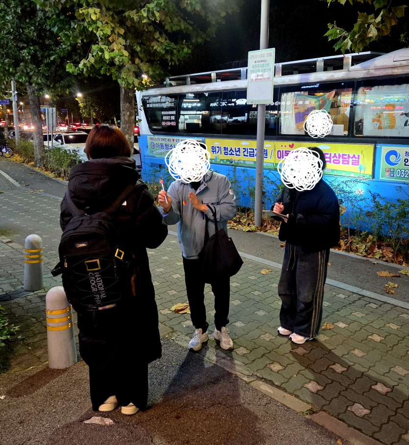 11월 20일 인천 동춘동 일대에서 거리 청소년을 대상으로 패트롤, 버스 문화활동, 거리상담을 진행하였습니다