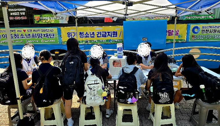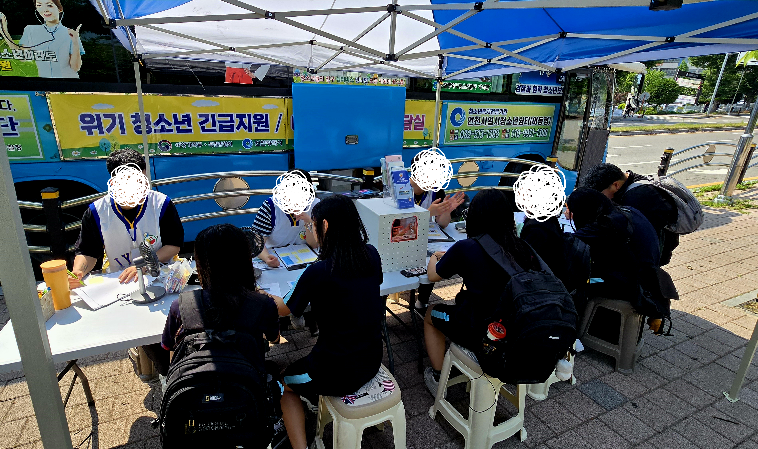 6월 18일 선인재단 일대에서 하교 청소년을 대상으로 버스 내 문화활동, 가출예방교육, 먹거리 지원 등 아웃리치 활동을 진행하였습니다.