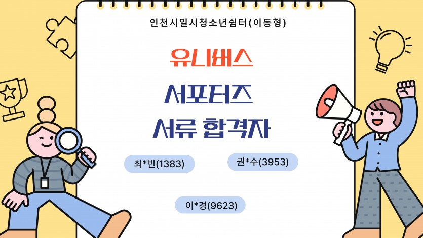 자원봉사 서포터즈 서류전형 합격자 발표 최고관리자 공지사항 0 602 2025.06.09 15:11 자원봉사 서포터즈 서류전형 합격자를 발표합니다. 지원해주신 여러분께 감사의 인사말씀을 전합니다.!!