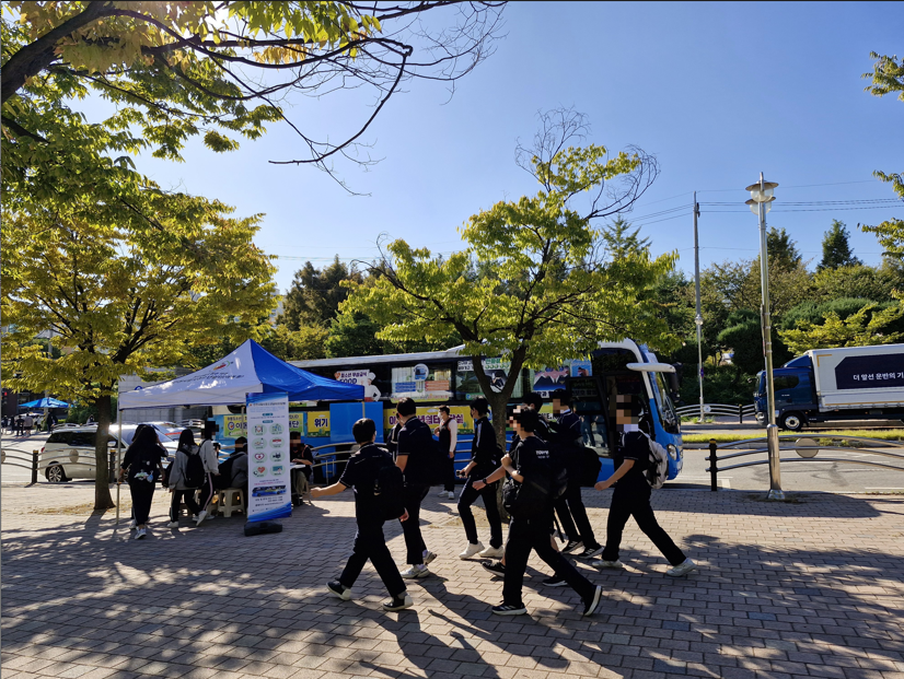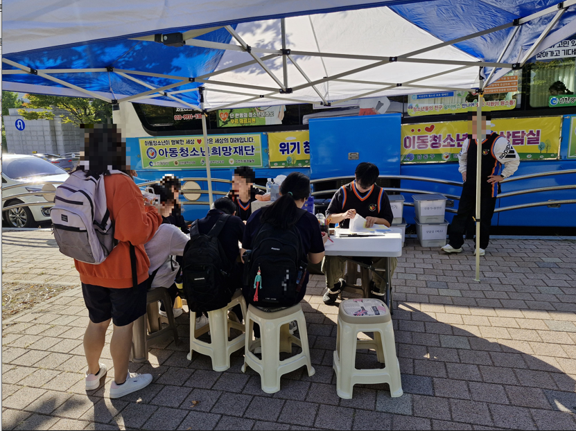 월 2일 선인재단 입구에서 하교 청소년을 대상으로 버스 내 문화활동, 가출예방교육, 먹거리 지원 등 아웃리치 활동을 진행하였습니다.