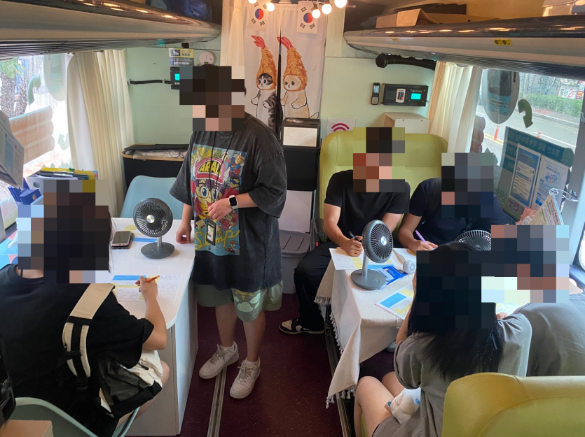 7월 18일 청라 홈플러스 인근에서 거리 청소년을 대상으로 버스 내 문화활동 아웃리치 활동을 진행하였습니다