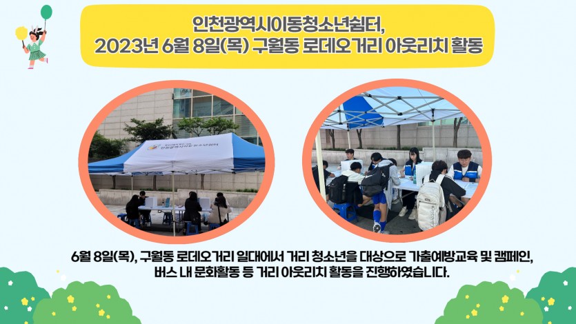 6월 8일(목) 구월동로데오거리 아웃리치 활동 내용입니다.