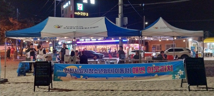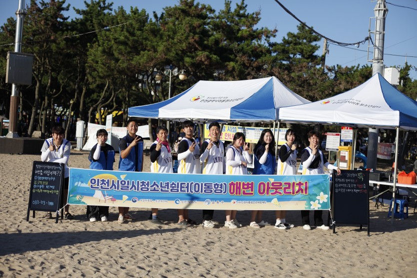 을왕리해변에 놀러온 청소년을 대상으로 가출예방교육 및 마약예방교육, 무알콜 칵테일 카페부스, 사진촬영부스를 운영하였습니다.